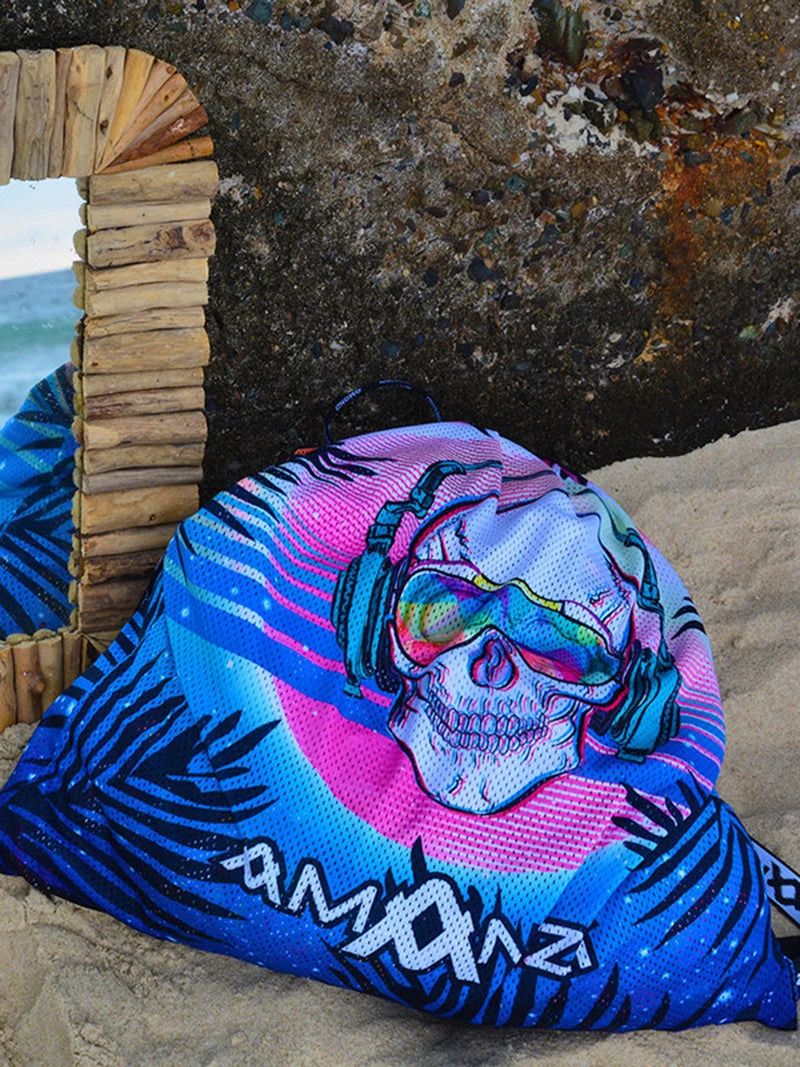 The grass is always greener under a coconut tree, or with the Tropiskull Mesh bag over one shoulder. Featuring 50 shades of tropical across a sunset beach plus a skull and beats print; make no bones about it, you’re going to fall skull over heels for this deadly tropi-cool Mesh Bag. AM14223