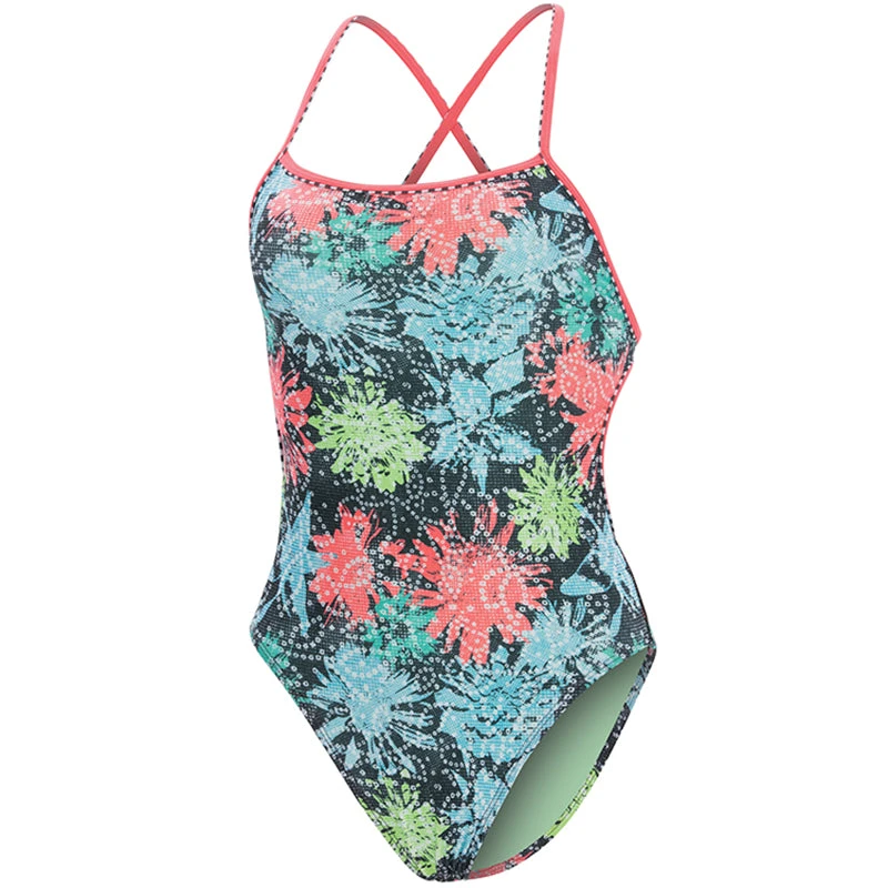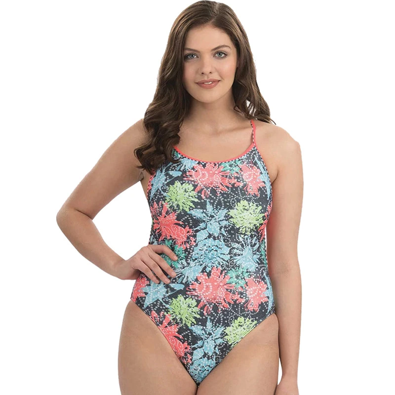 This vibrant abstract floral One-Piece swimsuit is a work of art. With a burst of color and a bold crisscross back, you’ll make a splash in this suit! Product code: 0910ASTOR