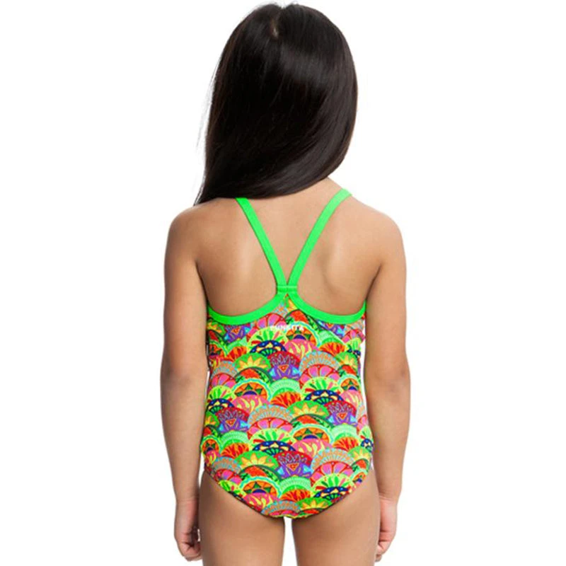 With full back coverage and a racer strap finish, this simple style is easy to put on and take off. Features a low leg, single strap bind with Funkita embroidered logo and full front lining. Available in sizes 1 – 6.