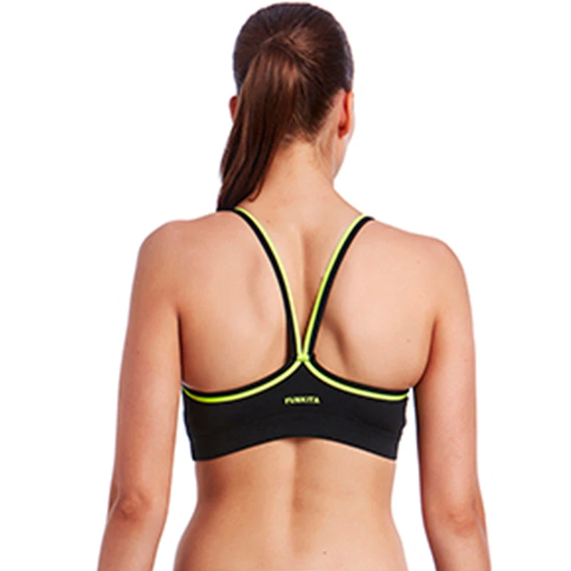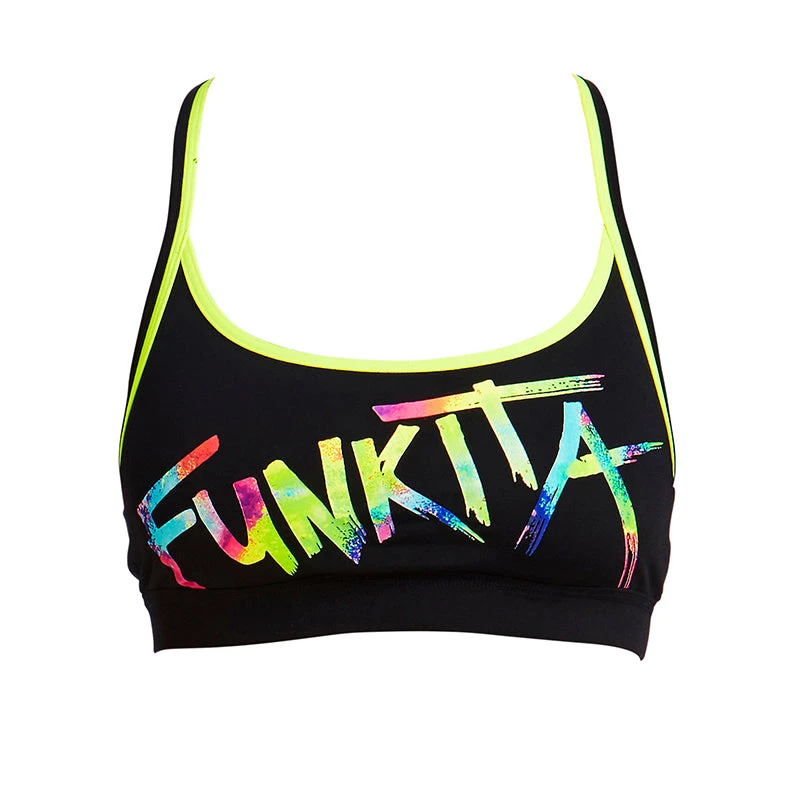 Firm fitting sports crop top with racer back and double strap bind finish with wide elastic for under bust support to give you the support you need in a sports top. Sold as separates.