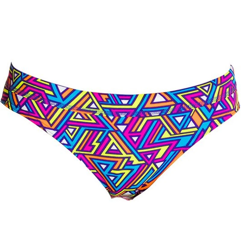 Hipster sports brief with drawcord and flat elastic waistband. Moderate leg rise and rear coverage. Sold as separates and available in sizes 8 – 14.