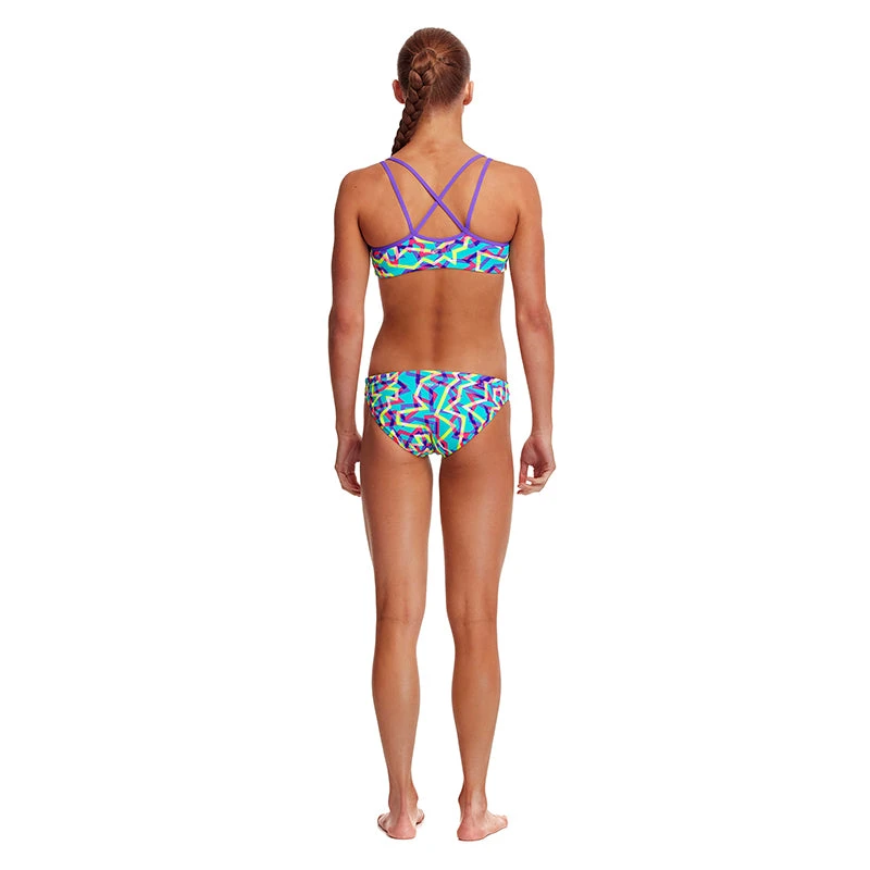 A double strap crossover back that provides added comfort and support for hours in the pool. Pairs back with the new skinny brief which provides firm rear coverage with drawcord.