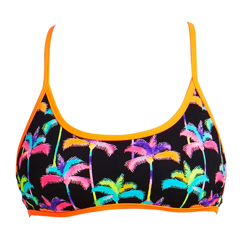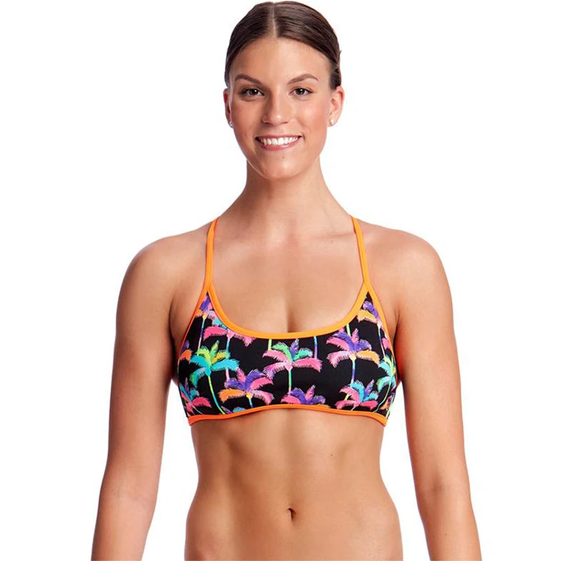 A stylish bikini top with adjustable single straps, crossing over at the back. Made with removable padding for additional comfort and support. Sold as separates and available in ladies sizes 8 – 14.
