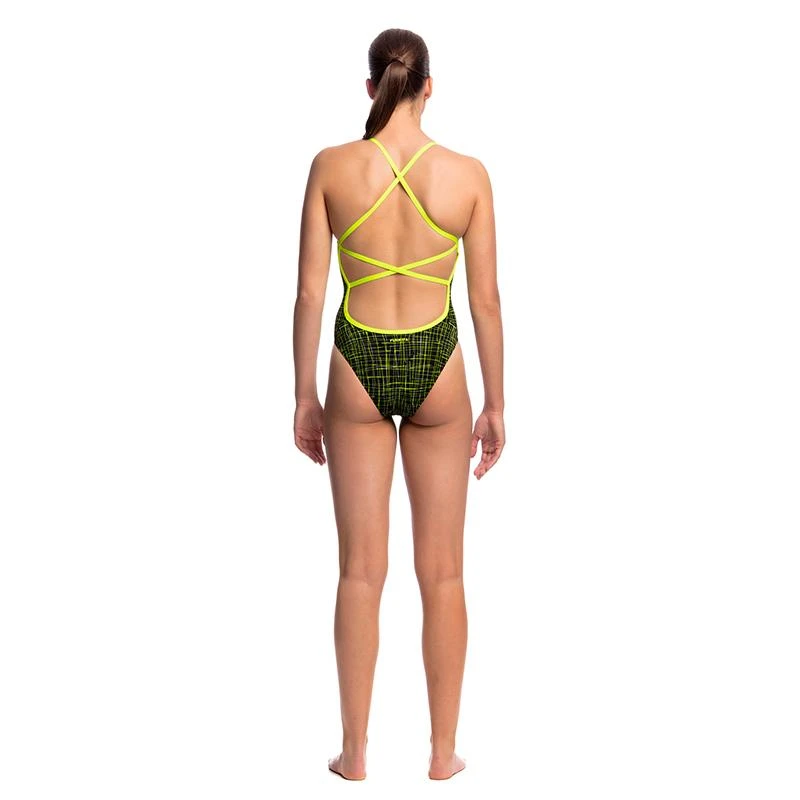 You’ll be sure to get noticed on pool deck in our strappiest one piece yet! Single strap binds that criss cross down your back with a moderately high cut leg and full front lining.
