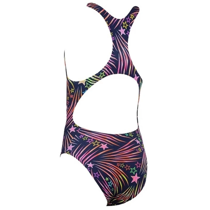 The girls Boom costume from Maru, is a great choice for wearing on holiday, swim training or learning to swim. The costumes Rave back design gives a bit more support and gives good of freedom for your swimming strokes.