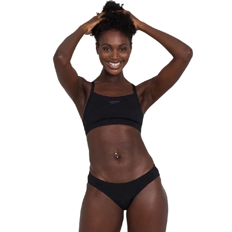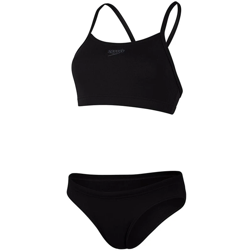 Simple, classic styling in timeless black. Breeze through your workout in this stylish two piece which cuts a clean, modern silhouette. Move in comfort as you swim with comfy, thin straps and a medium cut leg. Super-durable and built to last, it’s made from our exclusive Endurance+ fabric for 100% chlorine resistance. (8126730001)