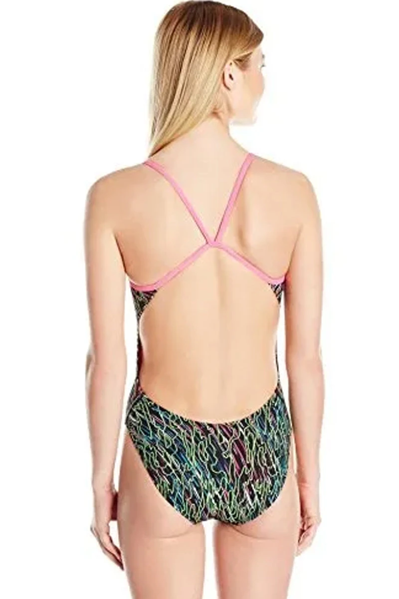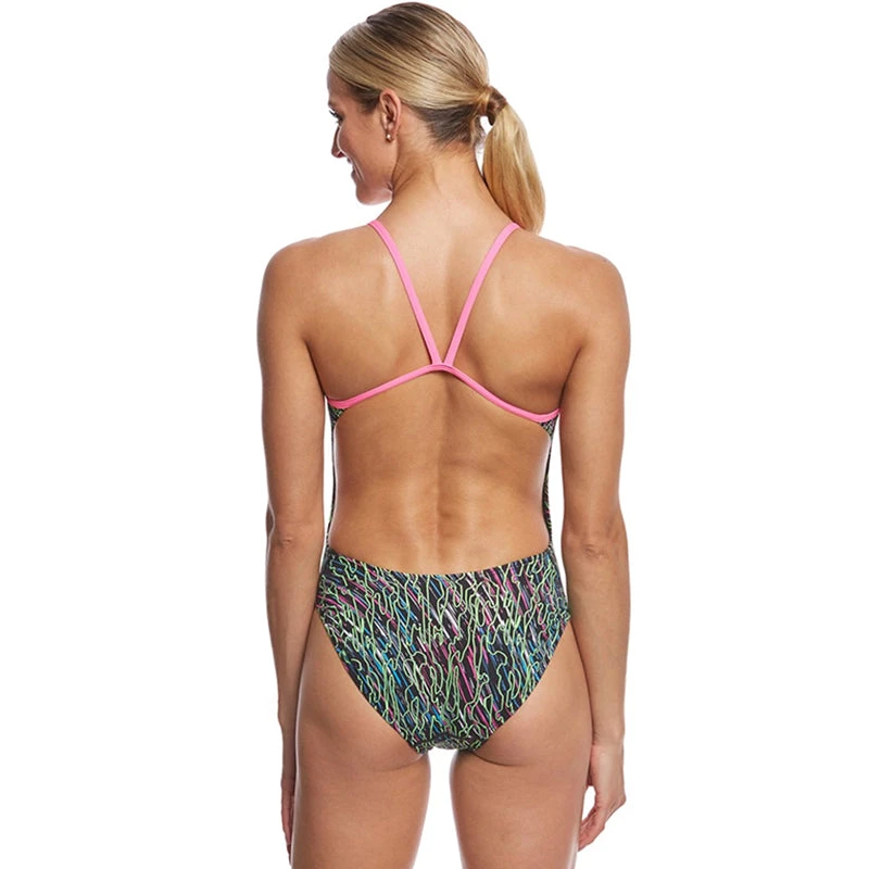 Designed for todays athlete, the TELE7A boasts a 100% polyester construction, making it nearly 20 times stronger than traditional swimwear. So, whether your training takes you to the pool or the beach, you can be sure TYR’s Durafast One® fabrication will provide both a secure fit and fade-free color. Featuring a low neckline, sleek/flexible straps, low back and high cut leg, the Cutoutfit is ideal for athletes who want minimal coverage with reliable support.